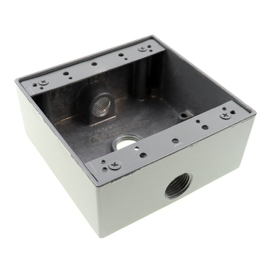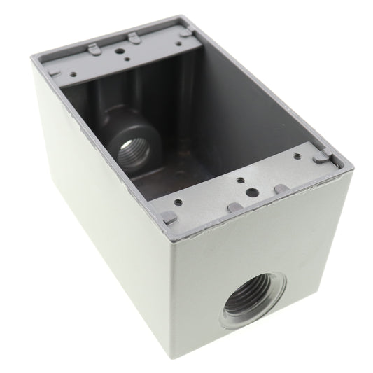 RED DOT 2IH3-2 S405E ALUMINUM WEATHERPROOF OUTLET BOX, 2 GANG, (3) 3/4", 2" DEEP