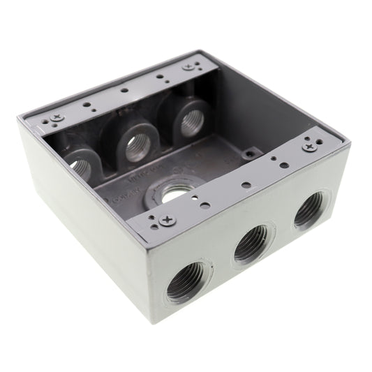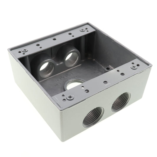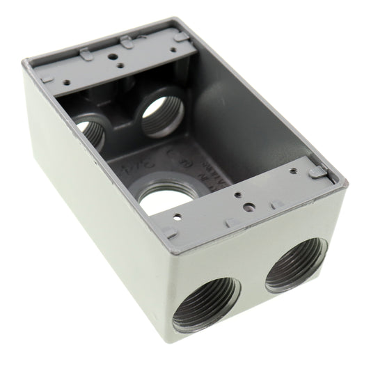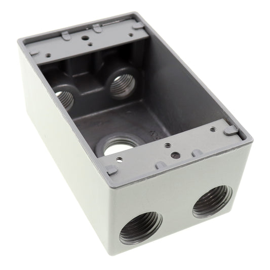 RED DOT IH5-2-LM S107E ALUMINUM WEATHERPROOF OUTLET BOX, 1G, (5) 3/4", 2.6" DEEP