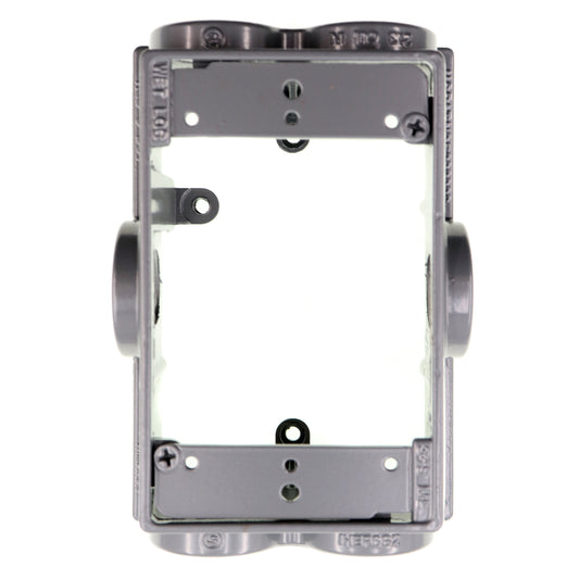 RED DOT 2IH7-1 S408E ALUMINUM WEATHERPROOF OUTLET BOX, 2 GANG, (7) 1/2", 2" DEEP