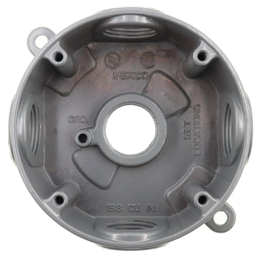 RED DOT S-48 S215E WEATHERPROOF ALUMINUM ROUND OUTLET BOX, (5) 3/4", 1-5/8" DEEP
