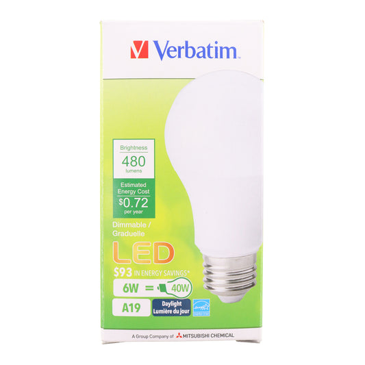 VERBATIM 99940 DIMMABLE A19 LED LIGHT BULB, 120V, E26, 480-LUMEN, 6W, 5000K