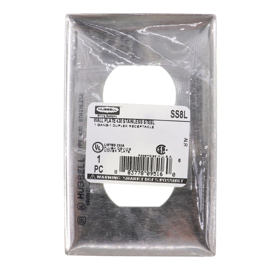 HUBBELL SS8L RECEPTACLE OUTLET WALLPLATE FACEPLATE, STAINLESS STEEL (10-PACK)