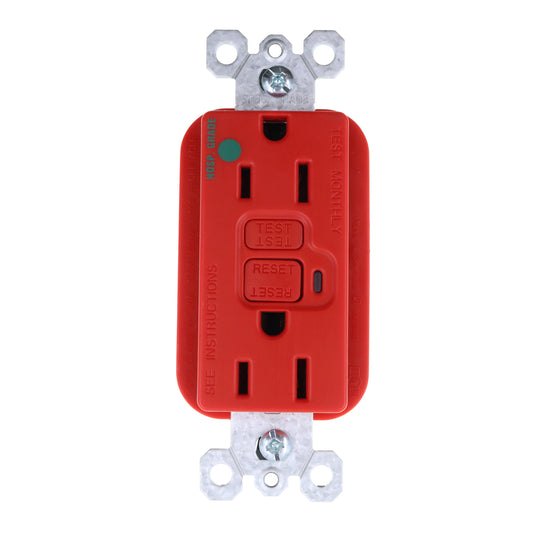 PASS & SEYMOUR PT1595-HGRED GFCI RECEPTACLE, HG, PLUGTAIL, 15A, 125V, RED