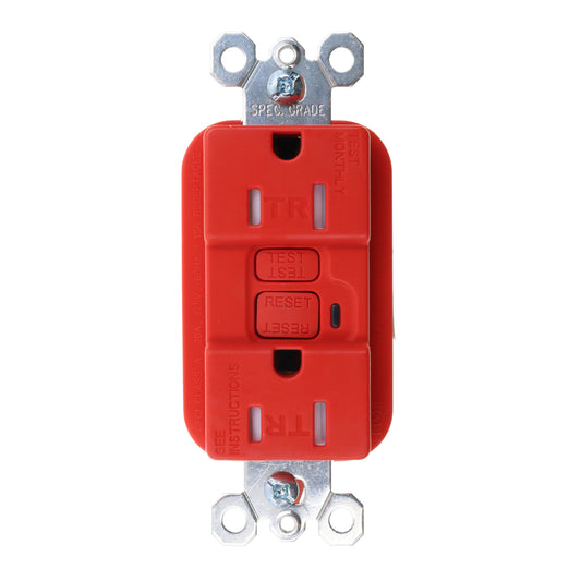 PASS & SEYMOUR PT1595-TRRED GFCI RECEPTACLE, PLUGTAIL, TR, SPEC, 15A, 125V, RED