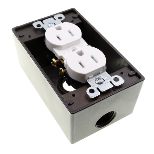 THOMAS & BETTS CS312BR WEATHERPROOF OUTDOOR DUPLEX OUTLET KIT, 15A, 125V, BRONZE