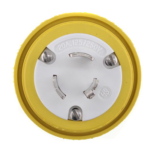 WOODHEAD 26W08 WATERTITE LOCKING PLUG, NON-NEMA, 3P, 3W, 125/250V, 20A, YELLOW